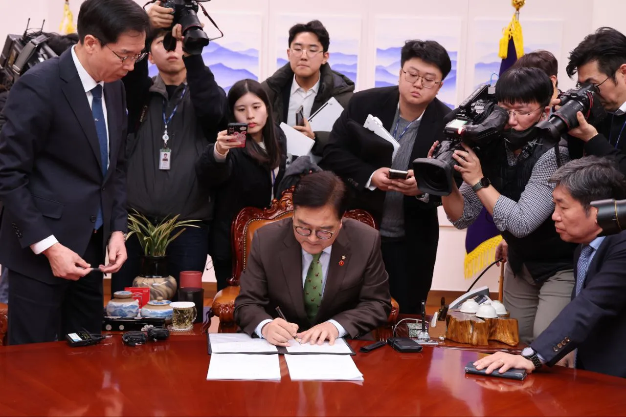 12์ 14์ผ, ๋ํ๋ฏผ๊ตญ ์ 20๋ ๋ํต๋ น ์ค์์ด์ ๋ํ ๊ตญํ์ ๋ ๋ฒ์งธ ํํต์์ถ์์ด ํต๊ณผ๋์ด ์ง๋ฌด๊ฐ ์ ์ง๋ ์ฌ๊ฑด ๋ฐ 2025๋